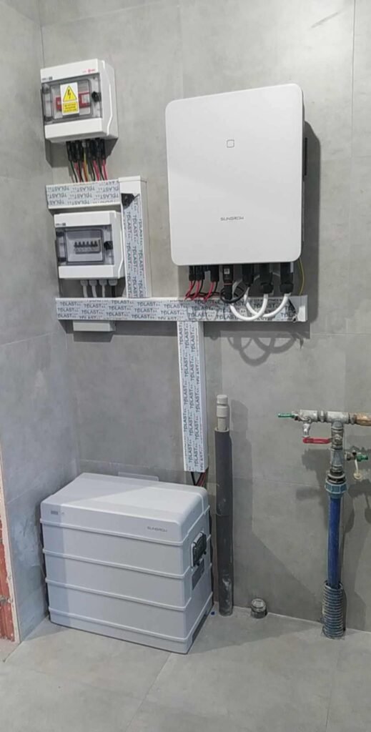 Instalacja fotowoltaiczna o mocy 6,3kW z magazynem energii 9,6kWh. Wykonana została także instalacja ogrzewania podłogowego oraz hydraulika.